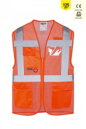 Tasarımında devrim yaratan bu ikaz yeleği, yüksek görünürlüğü sağlamak amacıyla yelek hafifliğini ve ceplerinin pratik kullanımını birleştirir. Güvenlik geçişleri ve kartları için şeffaf kimlik cebi bu giysi ile uyum sağlar. Çoklu cep dizaynı, telsiz halkası ve cep telefonu cebi ile EN standartlarına uygun bir üründür. 100% Polyester Tricot 125 gsm'dir.CE SertifikalıEN ISO 20471 Görünürlüğü arttıran reflektif bantDerin saklama cepleriTelefon cebiTelsiz halkasıŞeffaf kimlik cebiExtra hafif